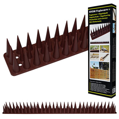 Undgå at fuglene lander på tagryggen, gelænder, stakit eller lign.